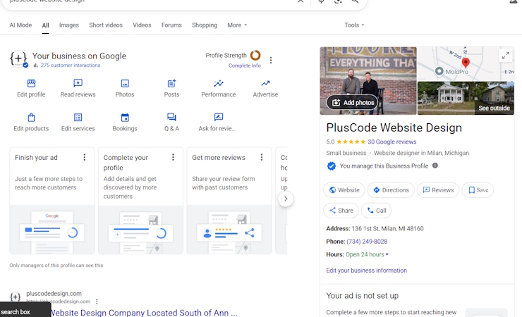 Your Google Business Profile is one of the most powerful tools for local visibility, but only if it's set up and maintained correctly. At PlusCode, we help ensure your profile is fully optimized to rank higher in local search results and attract more of the right customers. From fine-tuning business information and categories to improving your visual content and posting regular updates, we handle the details so your business stands out where it matters most—on Google Search and Maps.